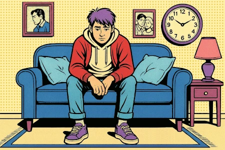 Ragazzo pensieroso seduto su un divano, simbolo del disagio adolescenziale e della solitudine emotiva